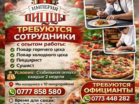 В команду "Империя пиццы" требуются сотрудники с опытом работы: